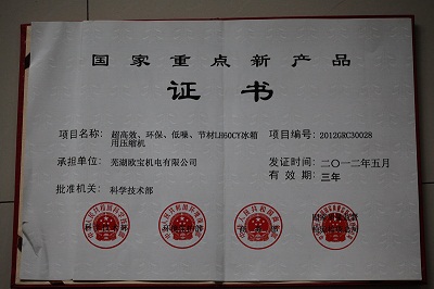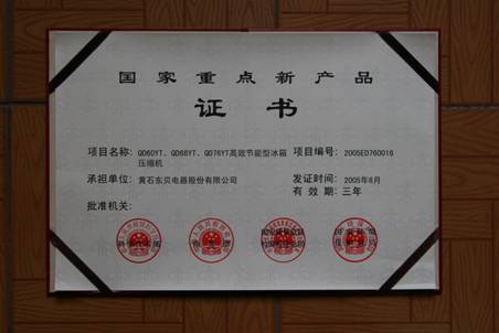 4, in January 8th, by the Hubei provincial science and Technology Department of the organization of expert review, defense and on-site audit, allowing the electric company to form a "energy saving and environmental protection refrigeration compressor in Key Laboratory of Hubei province".