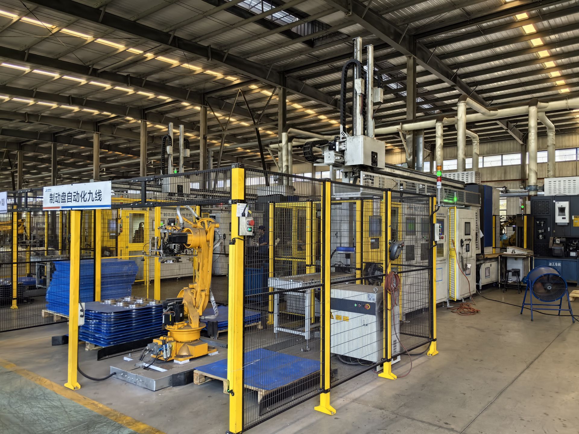 8月19日,在東貝鑄造剎車盤項目生產車間,自動化的生產線高速運轉,機器人伸展手臂,抓取原料后投放到指定位置進行工藝處理。